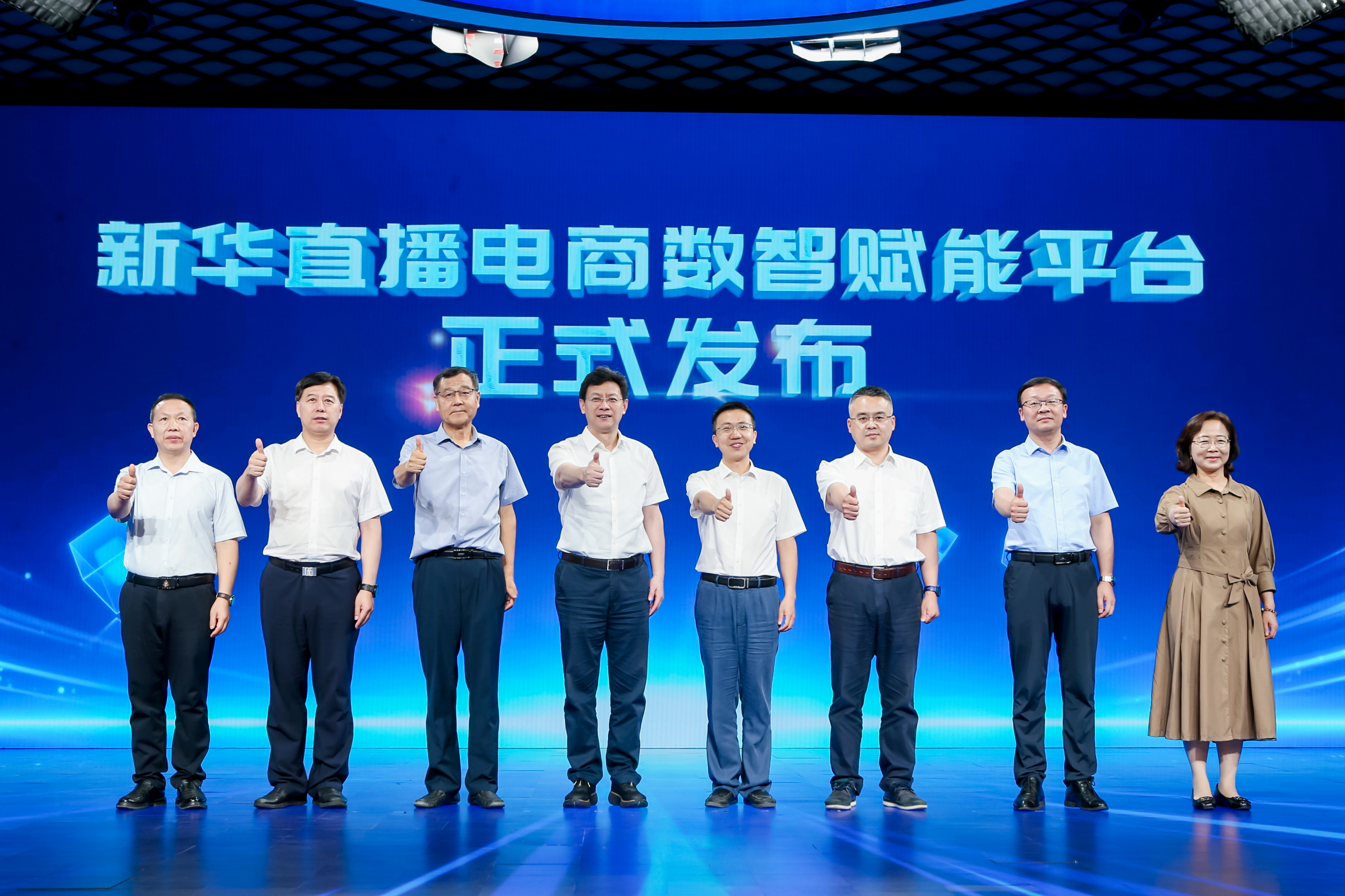 活动现场,中国贸促会原副会长、中国服务贸易协会会长张伟,新华网党委书记、董事长储学军,商务部电子商务和信息化司副司长王鹏飞,商务部流通产业促进中心副主任武传亮,中国网络社会组织联合会副秘书长张勇,中华职业教育社副总干事、党组成员李英爱,农业农村部信息中心副主任张国庆,《中国消费者》杂志社书记刘福林等领导和嘉宾共同启动“新华直播电商数智赋能平台”。