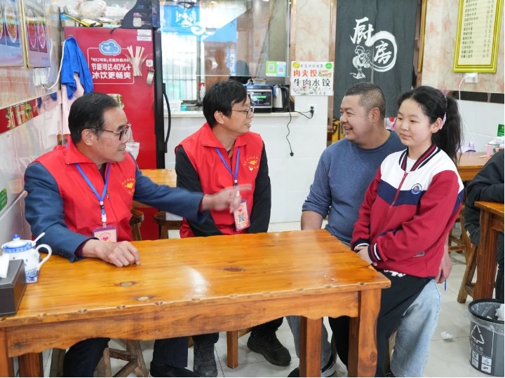 绍兴市志愿者在回访一位帮助过的商铺主。翁忻旸 摄