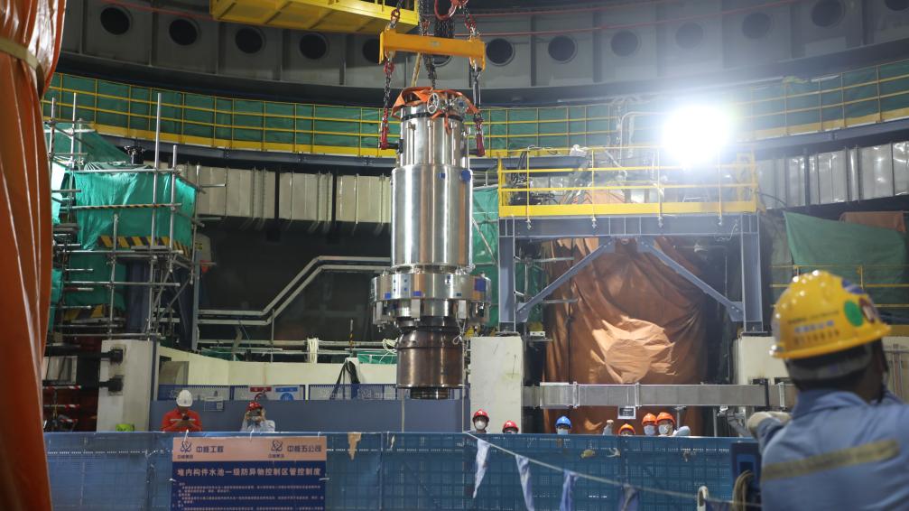 4月16日,全球首个陆上商用模块式小型堆——中核集团海南昌江多用途模块式小型堆科技示范工程“玲龙一号”首台主泵成功就位。来源:海南核电有限公司