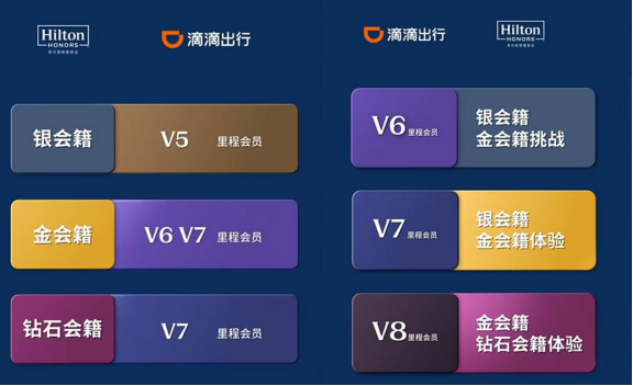 据了解,根据双方各自会员等级,将对应享受和体验定制化的专属权益,用户在滴滴和希尔顿荣誉客会双方官方平台,可领取相对应会员权益:希尔顿荣誉客会的银会籍、金会籍、钻石会籍会员可对应滴滴V5、V6、V7里程会员级别,享受快速应答、免费取消、机场休息室等服务等服务,并加速会籍升级进度;而滴滴V6、V7、V8里程会员可对应希尔顿荣誉客会的银会籍、金会籍、钻石会籍会员级别和体验,享受如房型升级、免费早餐、延迟退房等权益。