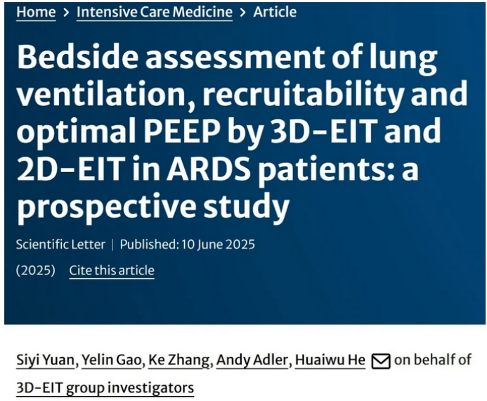 近日,北京协和医院重症医学科副主任何怀武团队应用双绑带的三维肺电阻抗断层成像(3D-EIT)技术监测急性呼吸窘迫综合征(ARDS)患者肺通气、评估可复张性及指导个体化呼气末正压(PEEP)设置,为急性呼吸窘迫综合征精准肺通气提供了新思路。该临床研究成果发表在重症医学领域权威期刊Intensive Care Medicine上。本研究得到了国家自然科学基金和中央高水平医院临床科研专项等的支持。