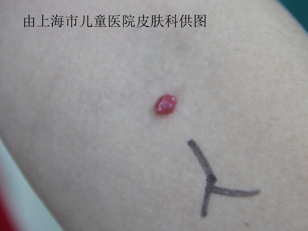 1、先天性小痣:皮损面积<患儿1个拇指甲大小
