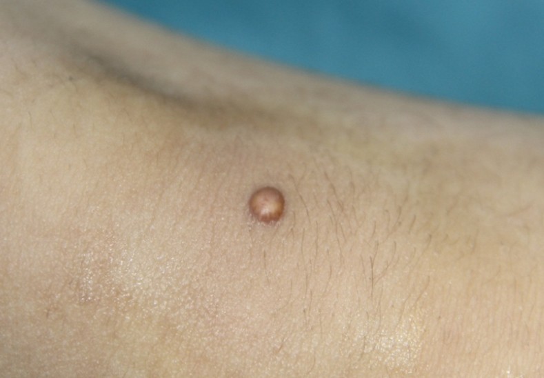1、普通蓝痣:相较体积小,直径一般在3~10mm之间,常为蓝色、灰蓝色或蓝黑色丘疹或结节,表面圆润、光滑。好发于手臂和足背,面部、四肢侧面等。本类型蓝痣一般不发生恶变,但终身不退。