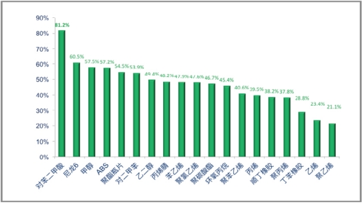 图2 :2024年中国主要化工产品产能全球占比。数据来源:中国化工经济技术发展中心