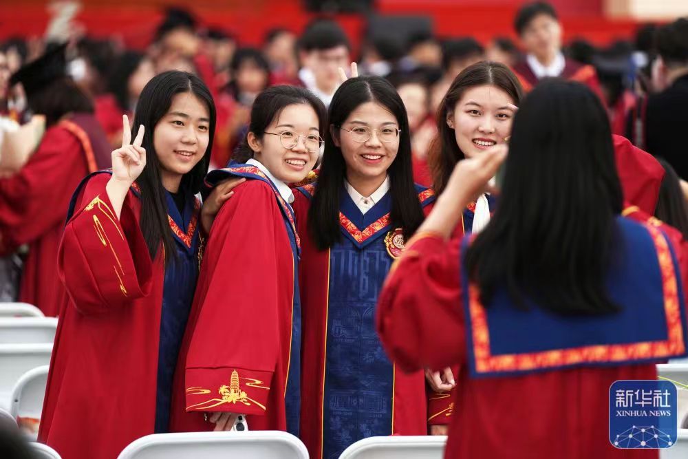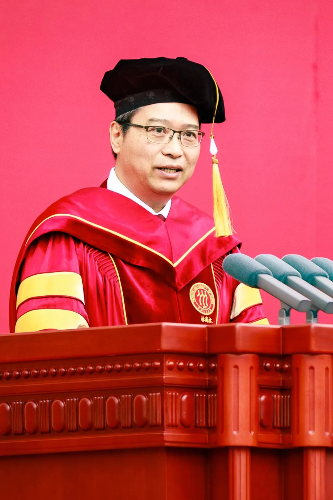 张东刚在致辞中表示,本次典礼以“争做强国建设、民族复兴的先锋闯将”为主题,是本硕博毕业生一体参与的毕业典礼,是教管辅三支队伍一体融入的毕业典礼,也是家校社三方主体一体打造的毕业典礼,为的就是激励广大毕业生牢记习近平总书记殷殷嘱托,不忘“复兴栋梁、强国先锋”“青春向党、不负人民”的誓言,在强国建设、民族复兴的康庄大道上跑出最好成绩。