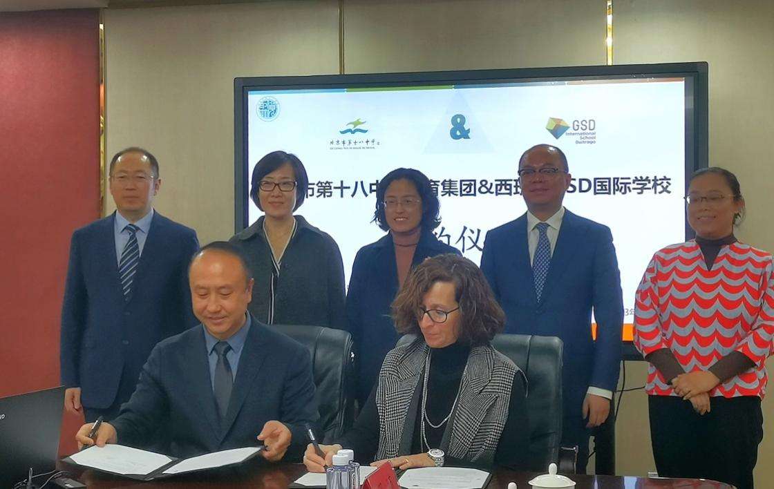 2月23日,北京市第十八中学教育集团与西班牙GSD国际学校举行签约仪式。签约后双方将开展短期学生研学交流和教师互访活动,相互交流学习中文和西班牙语教学经验,组织双方学生参加夏令营、冬令营等活动,并在语言、文化、艺术、体育、科技、创新人才等领域开展交流活动,为师生搭建更为广阔的学习研究平台,从而推进师资队伍国际化发展,增强学校国际化实践力,提升学生的全球视野和国际化交往能力。