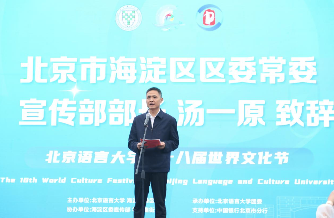 汤一原在致辞中表示,北京语言大学以其海纳百川的国际化特色吸引全球青年远赴而来,各国学子在此学习交流,共同攀登文化高峰。未来,海淀区将携手北语及各高校,共同讲述对外交往领域的海淀故事,愿各国青年凝心聚力,奋楫扬帆,以青春的智慧服务北京国际交往中心建设,以更大的作为携手构建人类命运共同体。