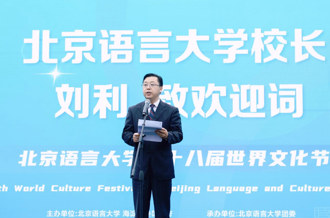 刘利在致辞中表示,北京语言大学是一所包容世界文化、培养国际人才的高等学府,学校六十余年的建设发展,记录着新中国对外汉语教学的发展足迹,见证了中国走向世界、世界认识中国的历史进程。世界文化节自2003年起首次举办,20年来已经成为彰显北语育人特色、展现学校校园文化和国际化形象的重要窗口,希望大家敞开胸怀,热烈拥抱世界文化之美。