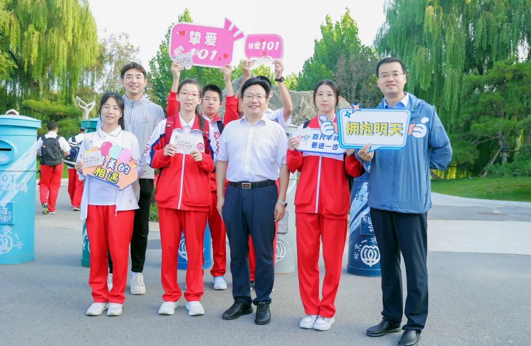 初一、高一年级的新同学,你们来自不同的学校,为了共同的梦想,走进一零一,为学校注入新的活力。“青春须早为,岂能长少年。”相聚在少年湖畔,你们的生命从此将永久地烙下一零一的印记,同时也将承担他带给你们的沉甸甸的责任与使命。一零一特有的精神内涵,有待你们去发现、去品味,欢迎你们在这美丽的校园开启新的征程,遇到最美的自己。