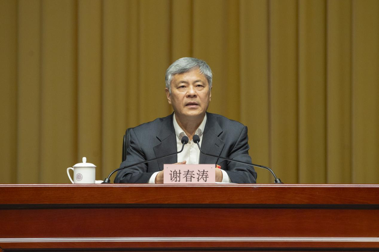 谢春涛以中华民族伟大复兴为主题主线,结合大量生动鲜活的历史案例带领全校党员重温党的百年奋斗历程。他从夺取新民主主义革命伟大胜利、完成社会主义革命和推进社会主义建设、进行改革开放和社会主义现代化建设、开创中国特色社会主义新时代四个历史阶段回顾总结了党的百年奋斗重大成就和历史经验。他说,我们要更加深刻地认识到“两个确立”的决定性意义,把握新时代新征程党的中心任务,不断增强做到“两个维护”的思想自觉、政治自觉、行动自觉,为全面建成社会主义现代化强国、全面推进中华民族伟大复兴作出新的更大贡献。