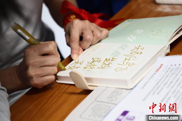 6月5日,在江西省南昌市第一中学高三年级的教室里,充满欢笑与祝福的高中“最后一课”生动上演,课堂上,有老师对学生的鼓励,也有学生对老师的感激,高三学子们在轻松愉快的氛围中结束了高中的“最后一课”,准备迎接高考。图为老师写下对学生的祝福寄语。 刘思伟 摄
