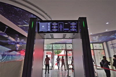 北航实验学校考点,升级后的智能安检门。新京报记者 李木易 摄