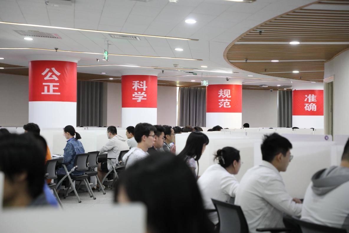 评卷现场,“公正、科学、规范、准确、严谨、守纪”的提示非常醒目。现场所有评卷人员的座位间都设有隔板,排与排之间“背对背”就座。按照规定,评卷场所实行封闭式管理,所有人员须凭有效证件入场,设立安检门与手持扫描仪等设备,对评卷人员实行严格安检。采取公安人员值守、昼夜值班巡逻等措施确保安全,要求每班值班人员不得少于3人,严禁无关人员进入评卷场所。