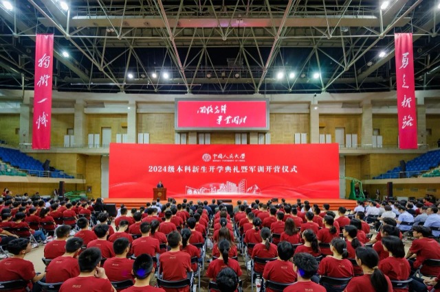 8月26日,中国人民大学举行2024级本科新生开学典礼暨军训开营仪式。中国人民大学党委书记张东刚主持,校长林尚立讲话,周恩来同志侄女、中国新闻社原副社长周秉德,中国人民大学首任校长吴玉章同志孙女、信息学院教授吴本立,“强军精武红四连”指导员戴研杰,“全国模范退役军人”新疆维吾尔自治区塔什库尔干塔吉克自治县义务护边员龙吉克•卡德尔,“全国三八红旗手”、云南德宏边境管理支队木康边境检查站缉毒女民警任莎莎,北京市文物局党组成员、副局长,北京中轴线申遗保护工作办公室专职副主任褚建好出席。
