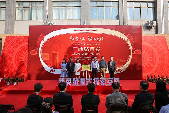 12月4日,经中国共产党第一次全国代表大会纪念馆授权,《数字一大·初心之旅》广西站首发仪式在南宁市科园大道68号软件园二期——茜英沉浸式探索大空间举办。广西相关政府部门、企业、行业、大中小学校、媒体的代表齐聚现场,共同探讨数智科技赋能产教融合、科教融汇发展新模式。