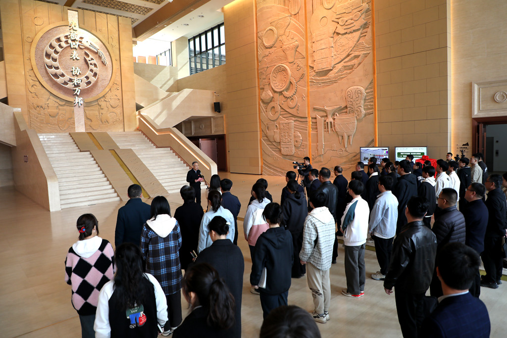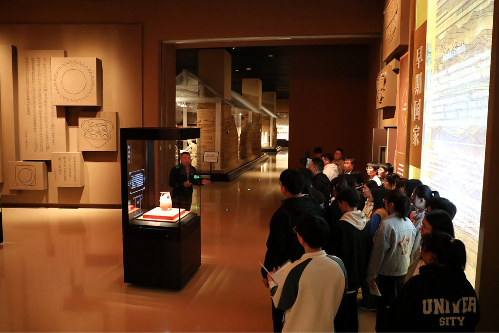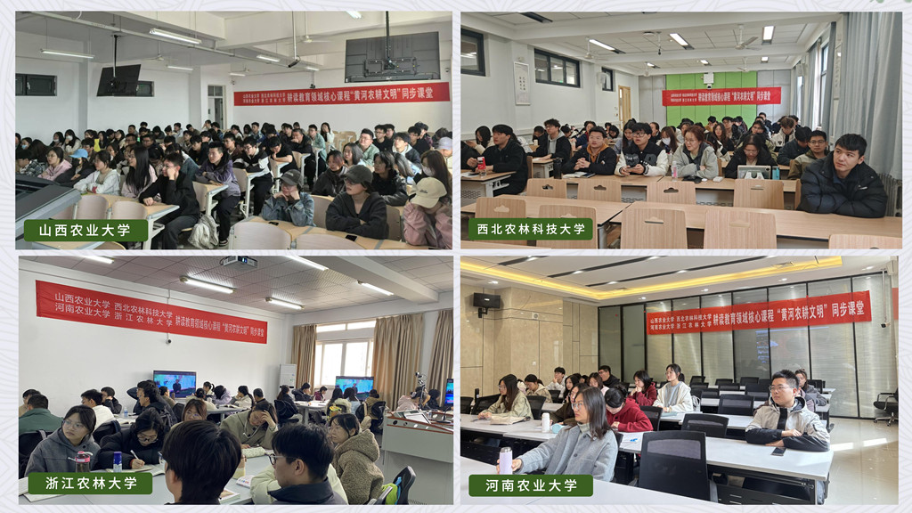 本次同步课堂由廖允成教授主讲,他围绕“四大早期都邑性遗址”“五谷起源”“二十四节气”“最初的中国”“最早文字”等核心知识点带领同学们进行深度探究:从炭化粟黍种子见证的农耕起源,到陶寺观象台揭示的节气雏形;从宫城双城制展现的早期国家形态,到朱书扁壶承载的文字萌芽,层层递进的考古实证让“中国”二字有了具象可依的文明坐标。农学院副院长郭数进教授结合博物馆场景,详细解读了陶寺都城布局、墓葬等级分化、盘龙纹陶盘图腾及朱书扁壶文字等关键证据,引导同学们理解思考陶寺文化在中华5000年文明史中的重要地位。现场同学们听得聚精会神,线上同学们积极互动,四所高校的同学们在历史与现实的对话中深化了“两个结合”的理解,感悟了黄河农耕文明,涵养了文化自信根基。