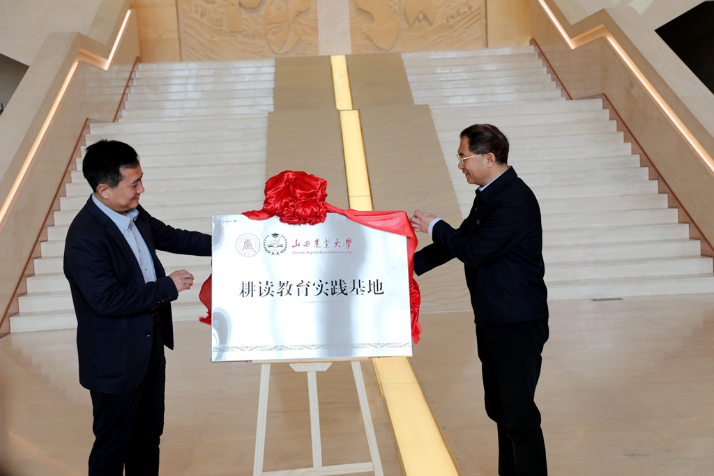 廖允成、刘春林共同为山西农业大学陶寺遗址博物馆耕读教育实践基地揭牌。