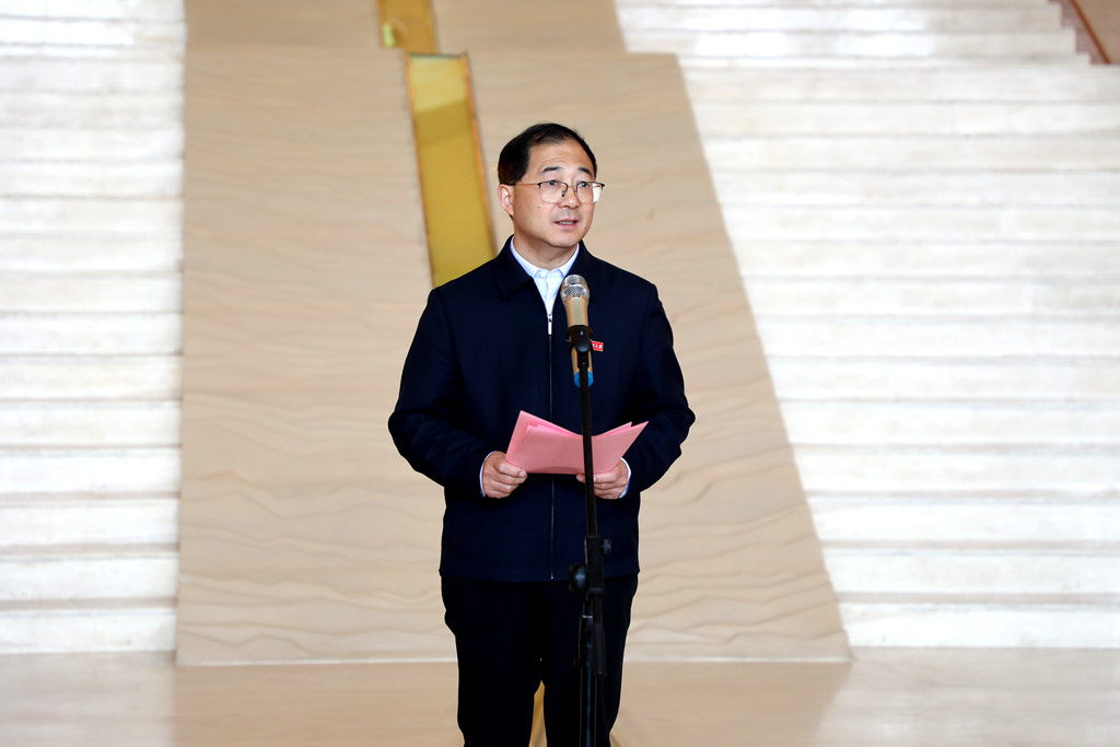 廖允成在致辞中向襄汾县委、县政府各级领导和同志们长期以来给予山西农业大学的支持和关心表示感谢。他表示,学校在陶寺遗址博物馆建立耕读教育基地,既是对中华农耕文明精神命脉的赓续发展,更是对“两个结合”重要论述的生动实践。学校将借助同步课堂等现代化教学手段,突破地域限制,创新教育范式,努力打造浸润耕读实践教育体系,创建文化赋能耕读品牌,使耕读教育基地成为马克思主义理论与中华农耕文明对话的“桥头堡”、高校立德树人与地方乡村振兴协同的“示范田”、优秀传统文化与现代教育理念交融的“活标本”。他表示,学校将充分发挥人才、科技、学科优势,与襄汾县深化合作,共同构建“科技驱动、产业带动、人才联动”的现代农业体系,为乡村振兴和农业强国建设贡献力量。