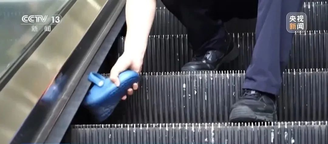 一些孩子喜欢在夏天穿洞洞鞋出门,进站乘坐扶梯时候,这种鞋子如果碰触到电梯边缘位置,很容易被卷进去。