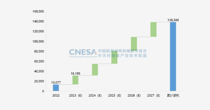 图8:未来5年中国新型储能新增投运规模预测(理想场景,2023-2027年) 单位:MW