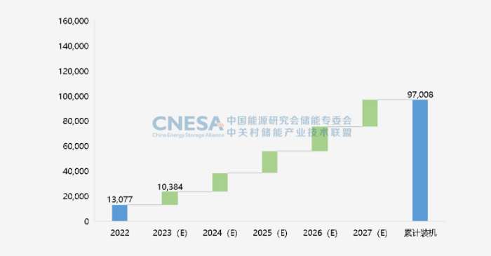图6:未来5年中国新型储能累计投运装机规模预测(2023-2027年) 单位:MW