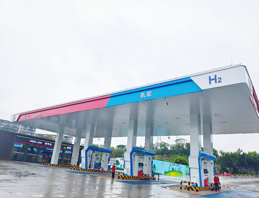 为推动氢能产业创新技术落地,中国石化还积极推进项目试点,打造出国内首座储氢井技术、首座分布式液氨分解制氢、首座分布式甲醇重整制氢、首座微管道输氢等多个“国内首创”加能站。在国内首座应用45兆帕高压储氢井技术的加氢站——重庆半山环道“气氢电服”综合加能站,高压储氢井密封和防氢脆工艺两项自主核心技术成功运用,该站所在的九龙坡区作为氢走廊的重要节点,逐渐汇聚形成包括氢动力商用车制造商、氢动力商用车物流公司、加氢站等在内的车辆制造、场景应用、能源补给全套流程体系。