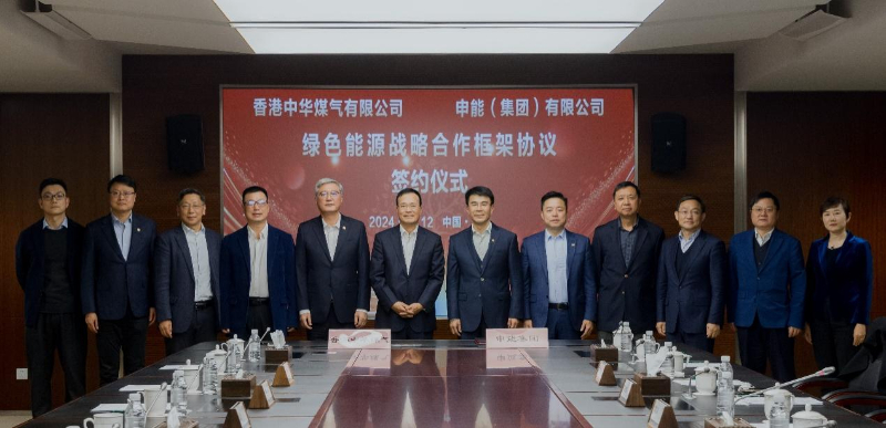 仪式上,双方建立磋商机制,具体包括:研究成立绿色能源合作投资平台,整合双方资源及优势共同拓展绿色甲醇、氢能等绿色能源市场;共同推进中华煤气绿色甲醇项目的制备增量,进一步提升绿色甲醇产能,满足市场需求;通过申能集团氢产业先发优势,以及中华煤气在香港开拓氢能应用的能力,推动香港能源低碳转型发展。