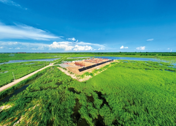 中国石油大庆油田碳中和生态园区 亚洲最大陆地采油平台——中国石油吉林油田新215区块16号大井丛平台正在平稳运行,油气生产实现集约化、现代化、高效化