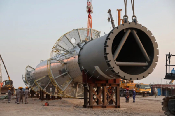 近日,法哈油田中央处理厂一期气包工程脱乙烷塔成功安装。