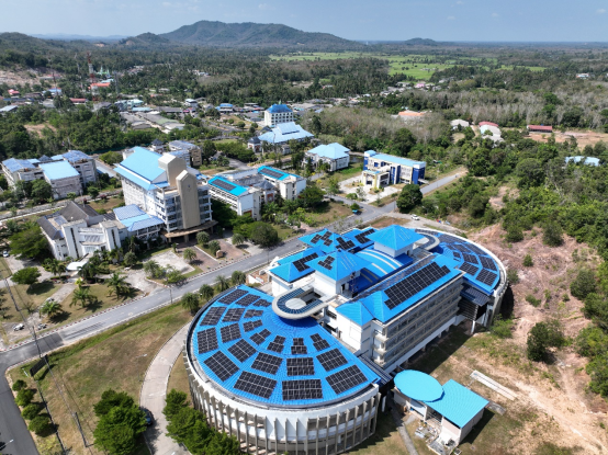 学校屋顶上一排排隆基Hi-MO X6组件成为泰国法塔尼大学践行绿色校园理念的生动注脚