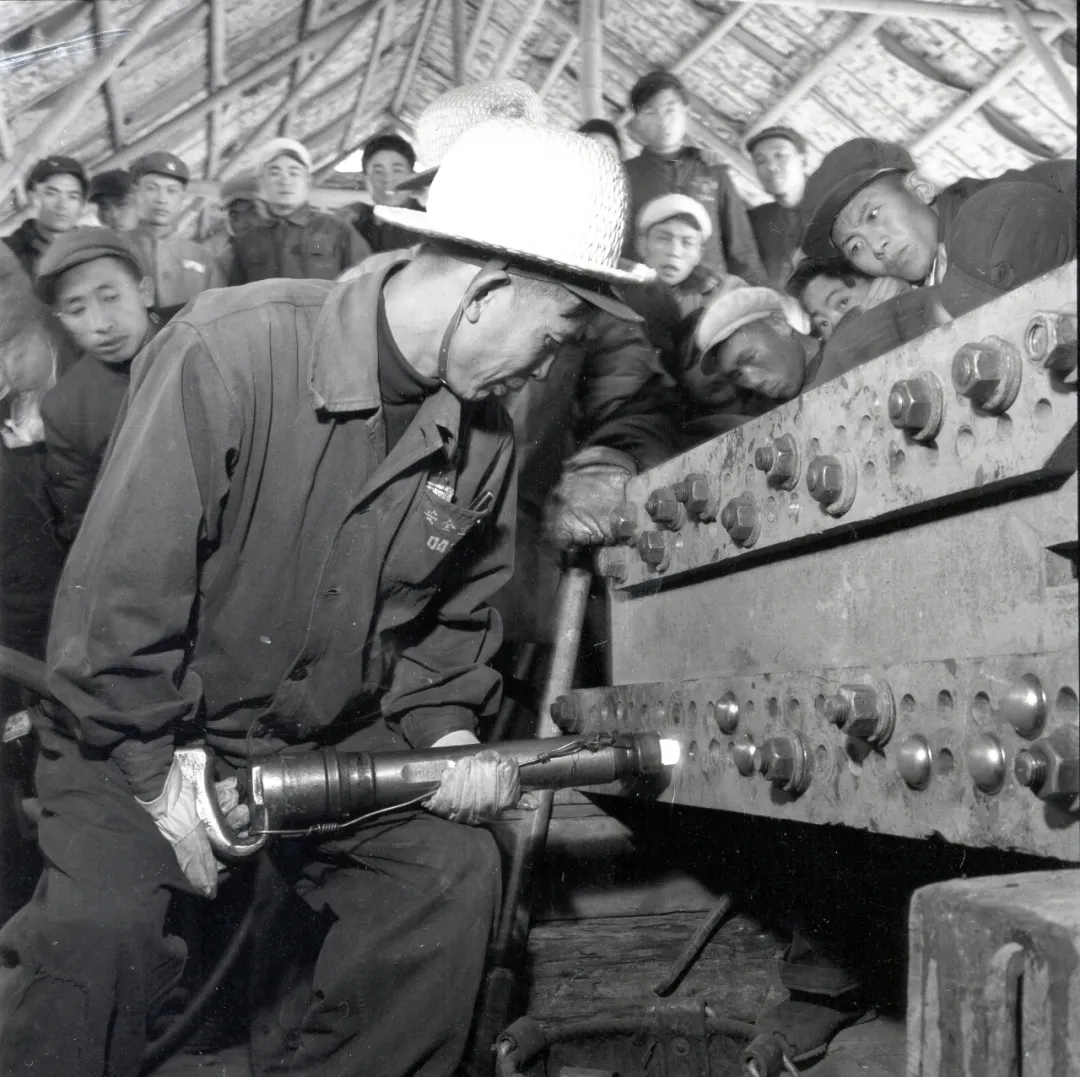 武汉长江大桥工人用高头锥体形钉杆铆钉