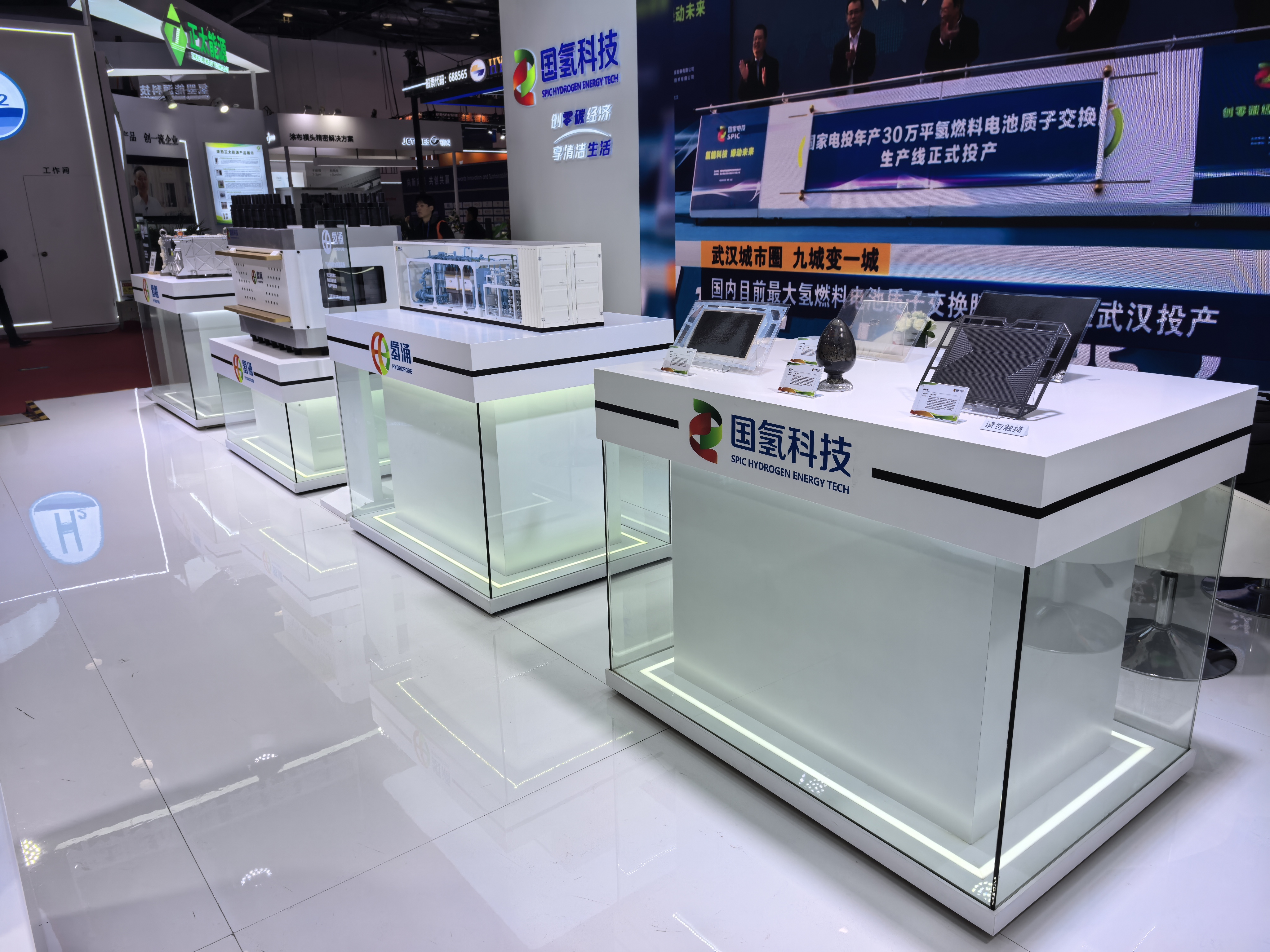 作为国内氢能领域唯一实现材料级自主化的领军企业,国氢科技在本次展会集中展示了 “1+2” 业务布局的最新成果:“斯”系列关键材料部件、“氢腾”系列燃料电池和 “氢涌”系列电解水制氢装备与解决方案,覆盖从关键材料到装备制造的全链条技术优势。