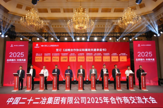 2024年,中国二十二冶在各级政府、社会各界的鼎力支持下,迈出新步伐、取得新成绩、开创新局面。2025年,中国二十二冶以全新姿态奋力开启“两步走、再转型,提质增效翻一番”高质量发展新征程,将与合作伙伴携手并肩、深化合作,积极为合作商打造健康发展平台,达成更高质量、更具成效的互利共赢,构建更为紧密的命运共同体,实现高质量发展,奔赴美好未来。