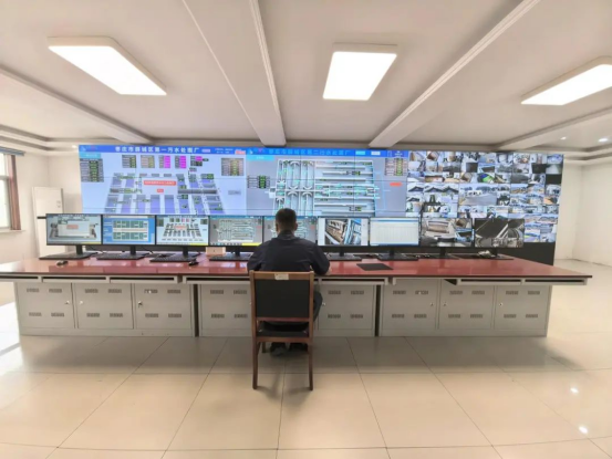 在枣庄北控水务的中控室,一块巨大的电子屏幕格外引人注目。屏幕上各种数据实时显示着厂区各工艺段设备的运行状态、水质监测指标等关键信息,是整个水厂高效运行的“智慧大脑”。