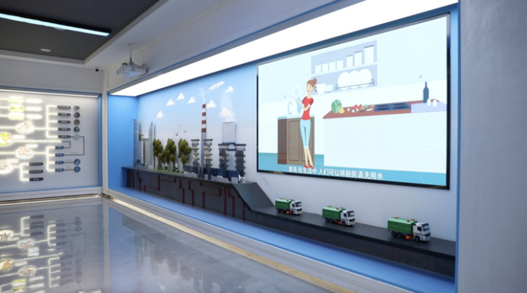 随后,研学团穿梭在一面面科普展示墙之间,结合立体模型与动态画面,学习了污水治理流程、污水和污泥的资源再利用方式等知识,了解了禹上生态公园如何通过“全地下双层加盖”建设形式,在地下以雨污混接改造工程实现污水零直排,地上则建造出了一片城市绿地。