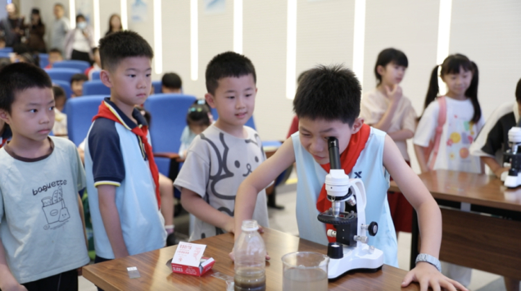 “原来水里有那么多种微生物,被污染过的水可以重复利用,感觉收获很大,让我更加知道要珍惜水资源。”闲林小学三年级新生赵奕辰说。