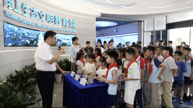 这是禹上生态文明教育馆净水魔法课堂的现场,也是“余韵研学”暑期研学的文明教育系列活动之一。7月14日下午,百余名青少年和家长齐聚禹上生态文明教育馆,开启了一场环保探索之旅。