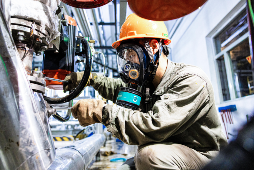 图为承德热电员工正在排查涉水设备