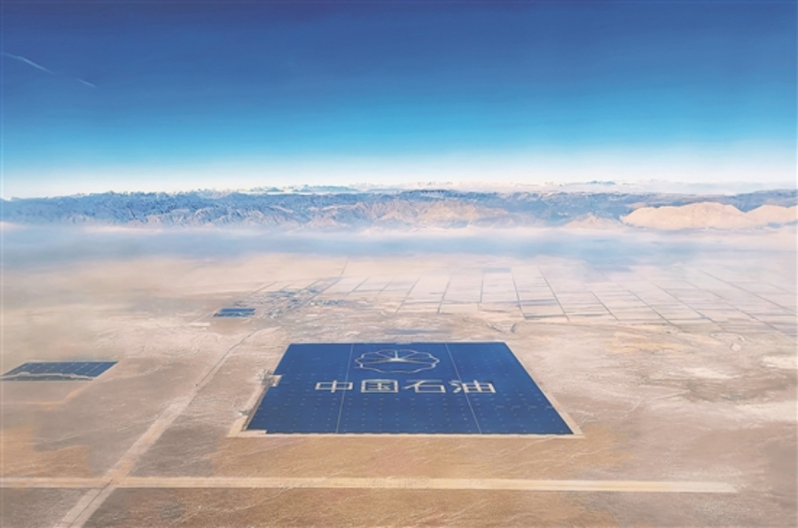 图为塔里木油田上库高新区低碳转型130万千瓦光伏项目现场。