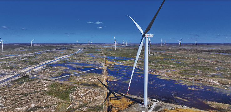 图为中国石油单体最大的集中风电项目--吉林油田昂格55万千瓦风电项目现场。