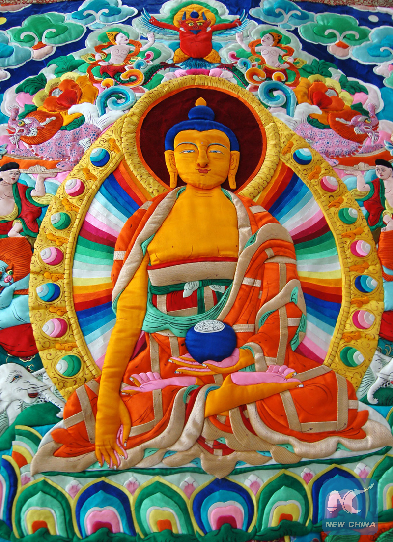 A silk thangka of Sakyamuni, the founder of Buddhism (Xinhua/Chogo)