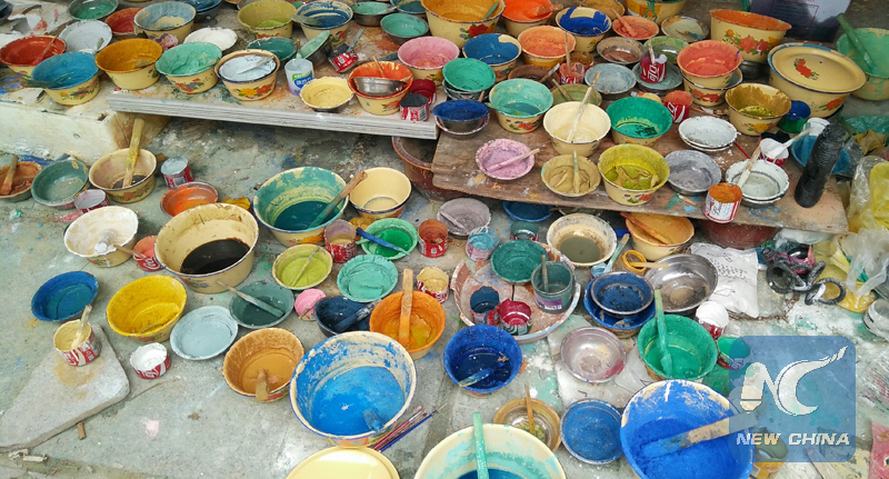 Thangka pigments of different colors (Xinhua/Jigme Dorje)