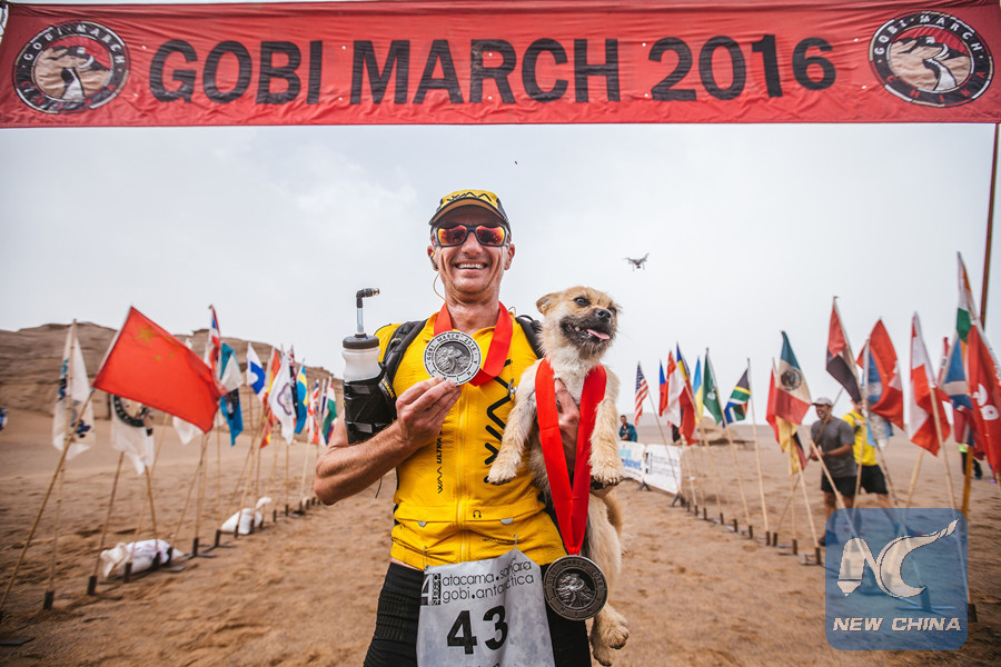 At first the man didn't believe that the dog would run with him, or if it did, it certainly wouldn't be able to keep up all day in temperatures up to 52 degrees Celsius. But Gobi did.