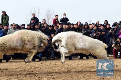 Sheep fight competition: Sheep fight on Laba has become a special festive ritual for the past 23 years in Liangshan county, east China's Shandong Province. (Xinhua/Guo Xulei)