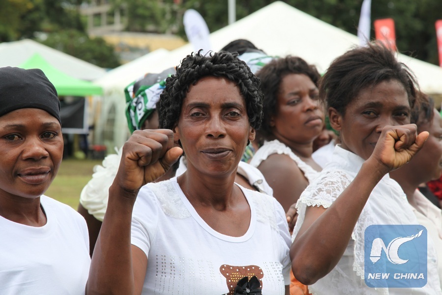 Women take part in the International Women's Day celebration in Lusaka, Zambia, March 8, 2016. (Xinhua/Peng Lijun)