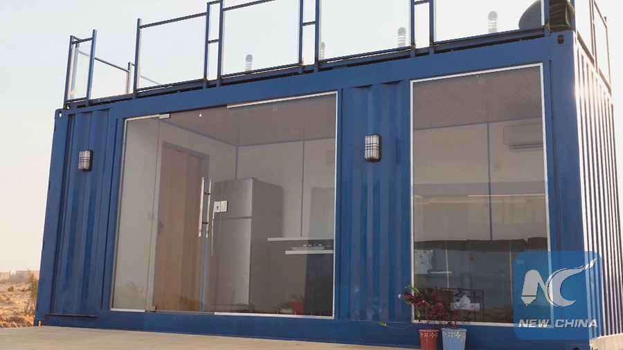 A shipping container apartment built by Youssef and Kareem, founder of Qubix company, in Cairo of Egypt. (Xinhua photo)