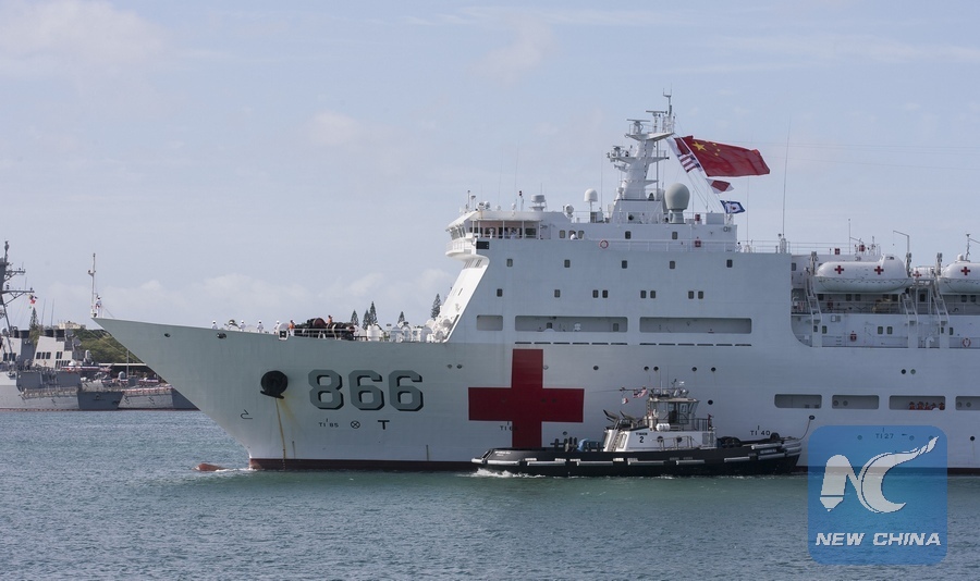 Chinese Navy hospital ship Peace Ark arrives in the Pearl Harbor in Hawaii, the United States, on June 29, 2016. (Xinhua/Eugene Tanner)