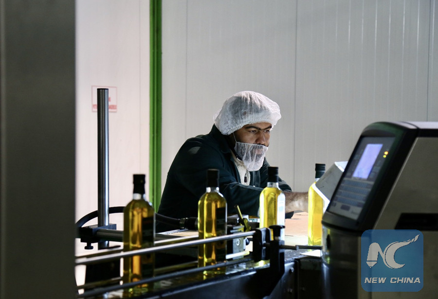 "Our company covers a complete industrial chain for olive oil," Noemen told Xinhua, "We begin with olive cultivation, then screening, squeezing, testing, filtration, storage, packaging...Each process has strict standards for organic olive oil."