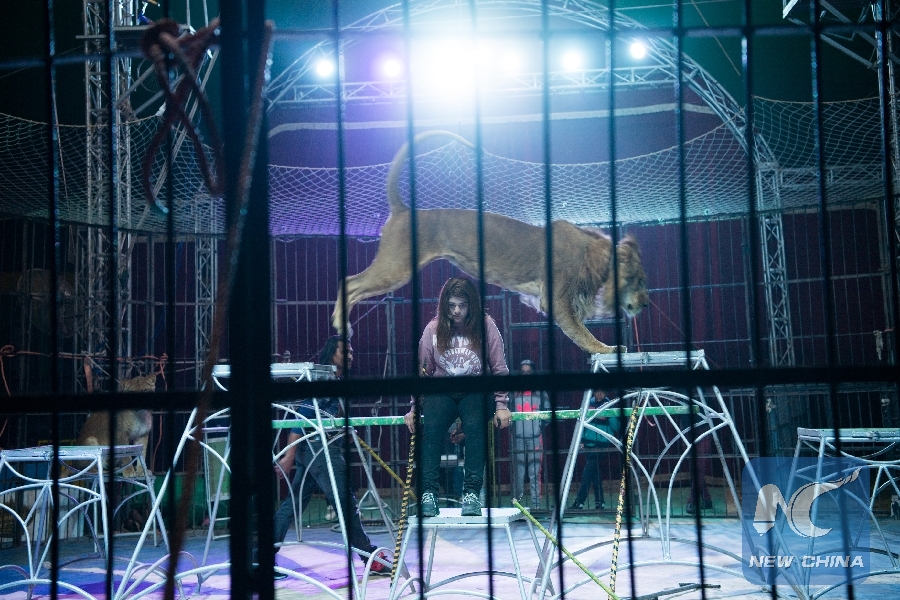 CAIRO, Dec. 16 (Xinhua) -- Sheroq Ismail, a 15-year-old Egyptian lion tamer, captivated the hearts of watchers around the caged circus ring in a marvelous night show.