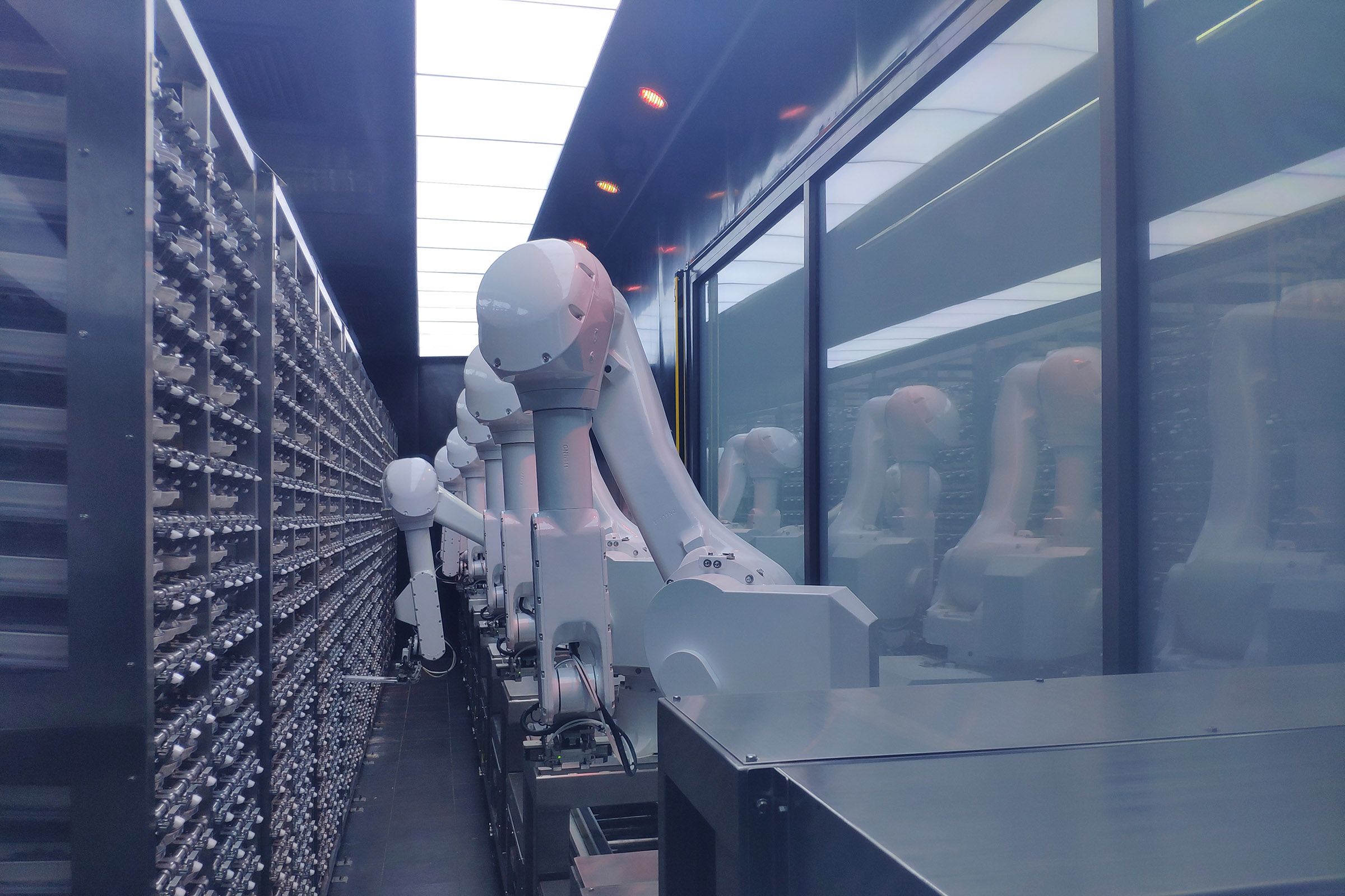 Automatic "machine arms" work in an intelligent dish sorting room of a hotpot restaurant in Beijing. (Xinhua/Wu Kaixiang)